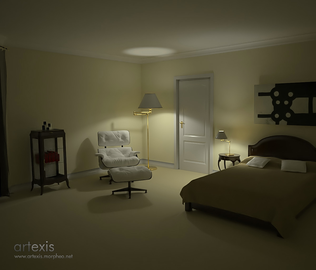 En cuanto metes varias texturas con Nor(o Bump), los tiempos se eternizan. La escena está bien, pero si se la enseñas a una mujer te dirá que le falta humanidad, lo que quiero decir es que coincido con kisckoart. Métele unos cuadros, alguna figura, alguna alfombra.