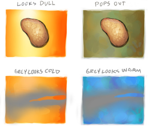 Cuando dos colores complementarios se ponen juntos el contraste es es bastante importante. También se puede oscurecer un color usando su complementario.
