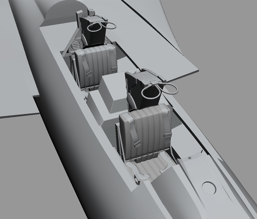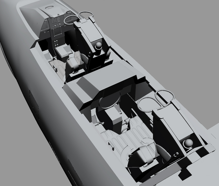 Karras, acabado? No me queda ni nada, toda la cabina (aunque los detalles de botones y todo eso será textura y Normal Maps), asientos, el tren de aterrizaje plegable.