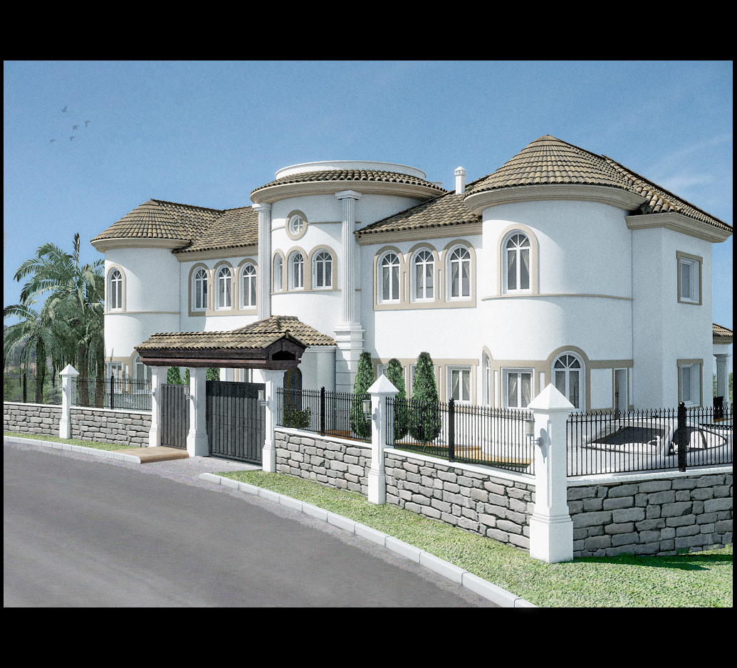 Vaya imagen guapa y vaya mansión (seguro que no la va a pagar con el sueldo de un infógrafo). Lo único que no me cuadra son las tejas en las dos torres. En realidad, eso se resuelve disminuyendo el tamaño de la teja canal, es decir, que cada hilada superior tiene las tejas cobijas más cerca unas de otras, porque en el mercado no existe esa variabilidad de tamaños de tejas.