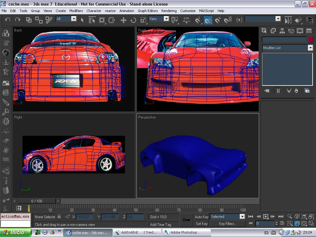 aquí tienes un video-tutorial de un Audi A3. (Entra en Autodesk 3ds Max y busca el tutorial: the Audi A3 tutorial for 3ds Max).