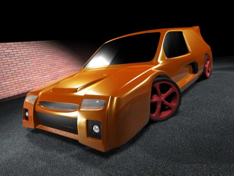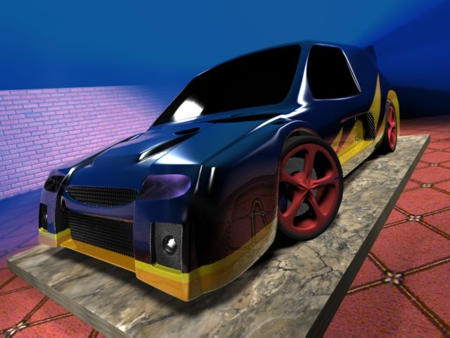 Hola, aquí os va mi primer coche. No me he basado en ningún modelo en particular, tenía en mente algo parecido a un golf, pero fue a partir de cero. No está acabado (no están unidas las simetrías), los que hayáis visto este mensajes, veréis que no he avanzado mucho en lo referente a los faros. Faltan arreglos de la parte de atrás, aparte de los faros (malditos faros), y bueno, estoy sujeto a todo tipo de opiniones, el escenario es provisional, lo puse únicamente para ver cómo iban quedando las reflexiones. Por cierto, les pido ayuda para hacer las separaciones entre las diferentes piezas de la chapa. Un saludo.