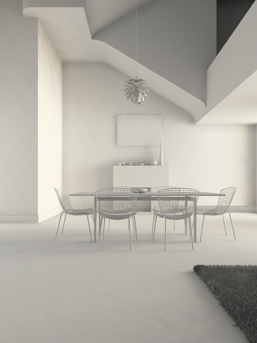 Me parece un interior de lo más agradable, así como el mobiliario escojido. Esa lámpara del techo. ¿la has modelado tu, o es de una librería?