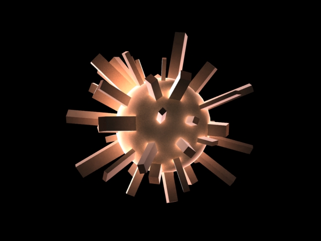 En la imagen he multiplicado y distribuido una caja sobre una esfera.