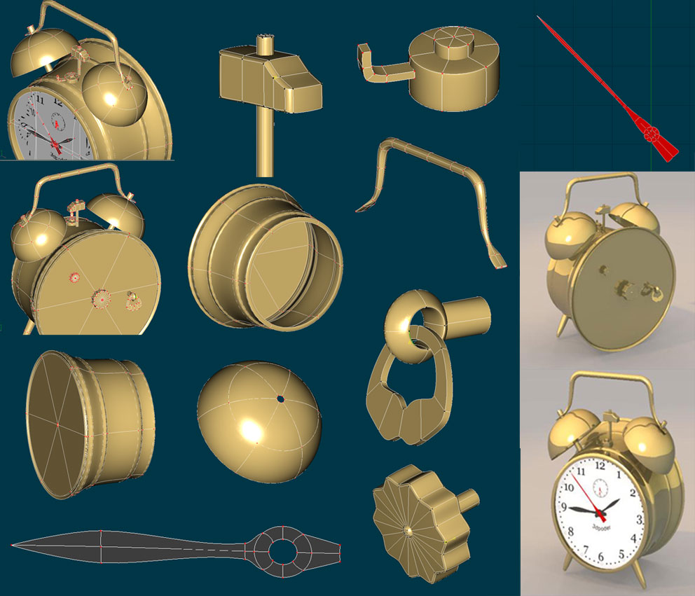 Apenas he tenido tiempo para terminar la cafetera y aún me falta el reloj. No sé si pueda hacer un tutorial, pero lo único que tienes que hacer es desarmar mentalmente, o dibujando, las piezas, sacar del objeto complejo las formas simples que lo componen.