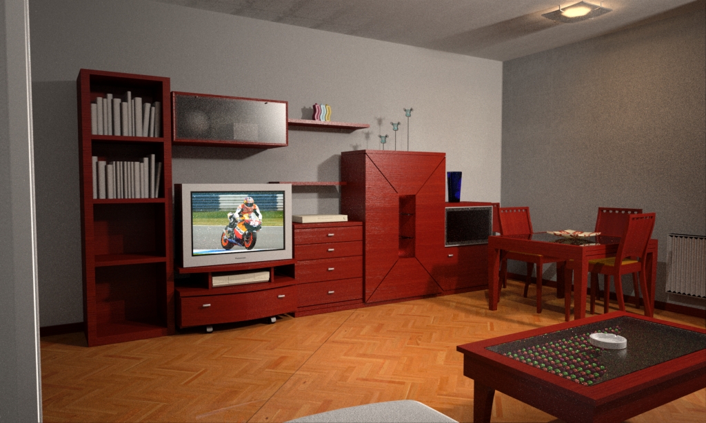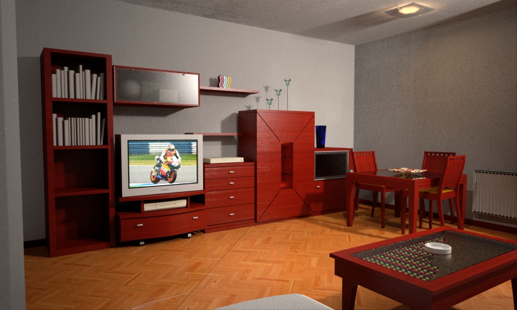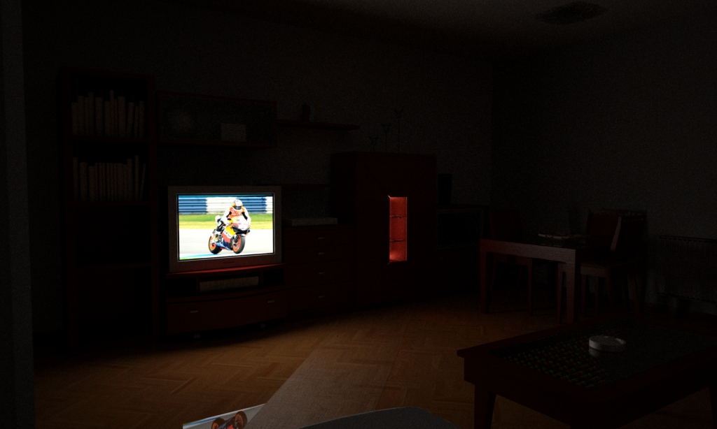 Y bueno, me queda todavía por hacer, cambiar colores de texturas, modelar más cosas, ajustar luces. Un saludo.