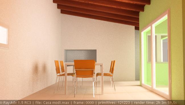 soy un aprendiz de Vray y hace poco comencé a hacer una escena de lo que sería la ampliación de mi casa. Dentro de mis limitaciones en cuanto a conocimientos referidos a 3d Studio y Vray, claro, la cuestión es que hace unos días que vengo tratando de lidiar con una especie de ruido que ensucia toda la escena. Al principio pensé que se trataba del material utilizado en la pared con un Bump considerebale (sacado de la biblioteca de evermotion), pero luego de cambiarlo por un color liso y ver que todo seguía igual, me di cuenta que esto no era, entonces me metí de lleno en los parámetros de renderizado de Vray propiamente dicho y fui tirando varios render cambiando: