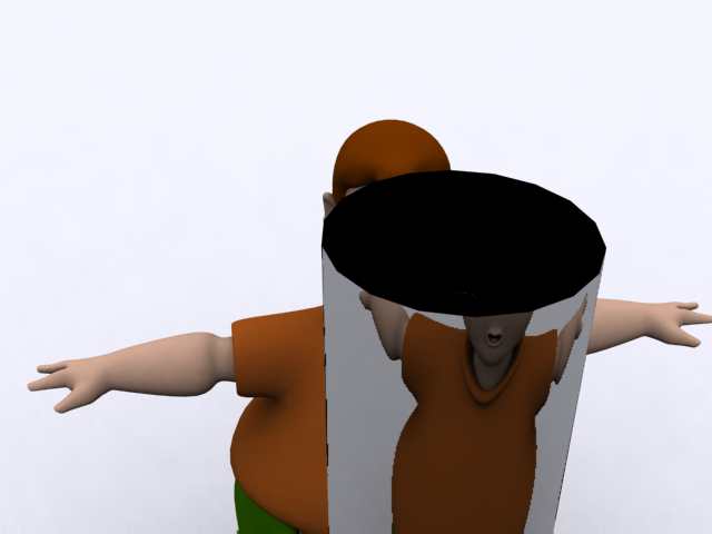 Esto es lo máximo que he conseguido con lo que me comentasteis. El material es un raytracer de cristal, la luz cenital, con un plano blanco, el cilindro tiene un mapa UVW mapping aplicado, pero aun así me sale así.