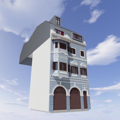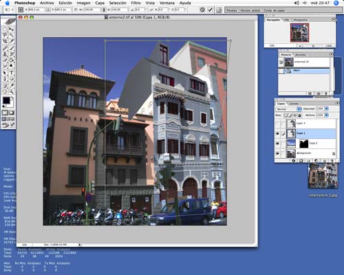 Se trata de una intervención sobre un edificio protegido, tanto lo viejo como lo nuevo es 3d en AutoCAD y max con Vray 1.47, sobre fotografía con bastante Photoshop.