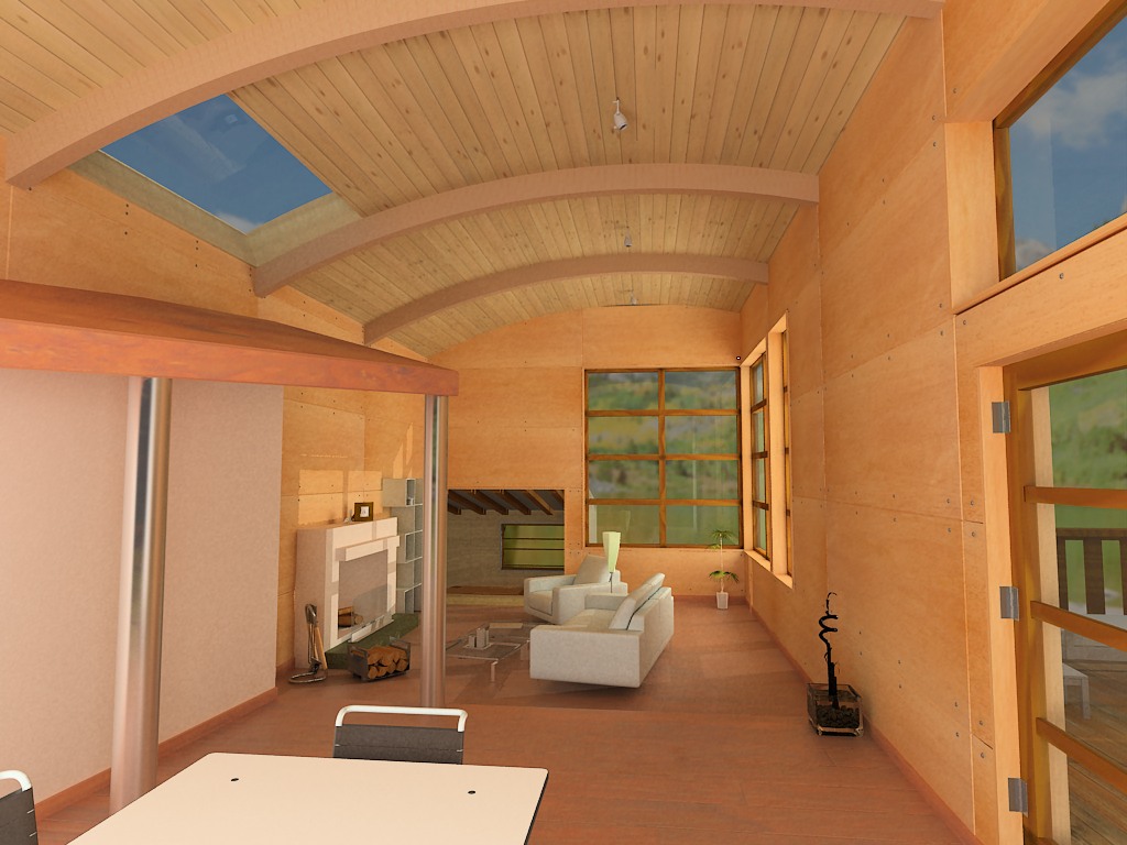 La iluminación es una Target Direct en el exterior y dos Vray Light dentro de casa, también hay una omni en la habitación del fondo, pero a muy baja intensidad.