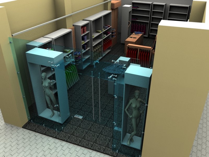 Hola a todos, una tienda de ropa quiere un escaparate para uno de sus nuevos locales. Como lo que interesa en cuestión es el vidrio del escaparate lo he coloreado muy descaradamente de azul.