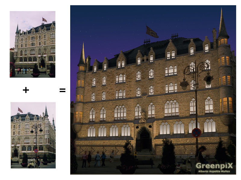 Yo también lo hago bastante a menudo, aunque nunca había visto estos tutoriales. Me dan fotografías de día de locales a reformar, y me piden la infografía de la reforma encajada en la fotografía de noche, (manda webs). Para ser más exactos me piden una especie de atardecer.