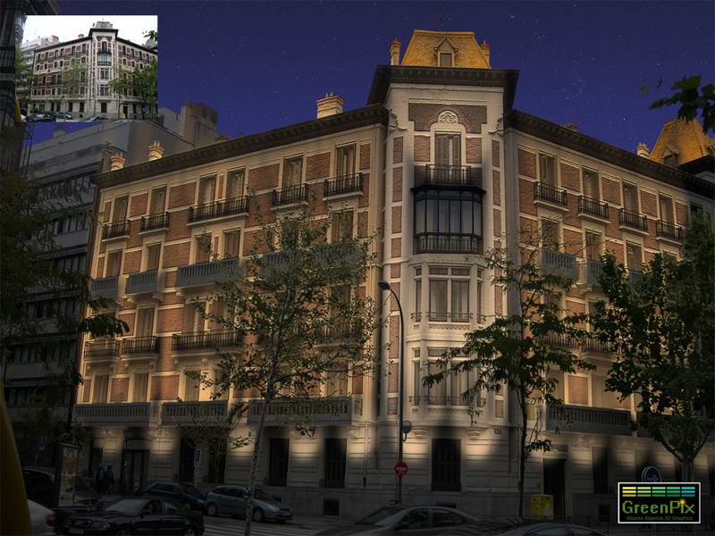 Así que tengo que hacer mi render nocturno, y luego al encajarlo, retocar el fondo hasta conseguir integrarlo mejor posible.