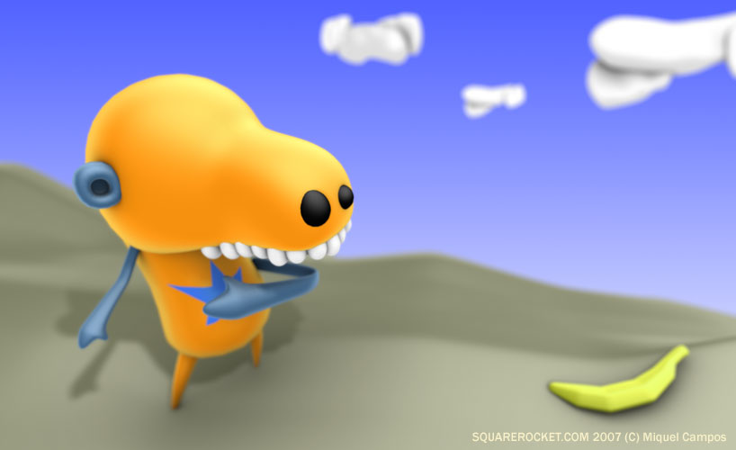 En este último las nubes compiten en protagonismo con el plátano, a donde queieres que miremos? También la susodicha fruta parece más acentada en el suelo que el personaje y eso da la sensación que uno de los dos está mal integrado. Lo anteriores trabajos están mejores, este último es simplemente barato. Un saludo.
