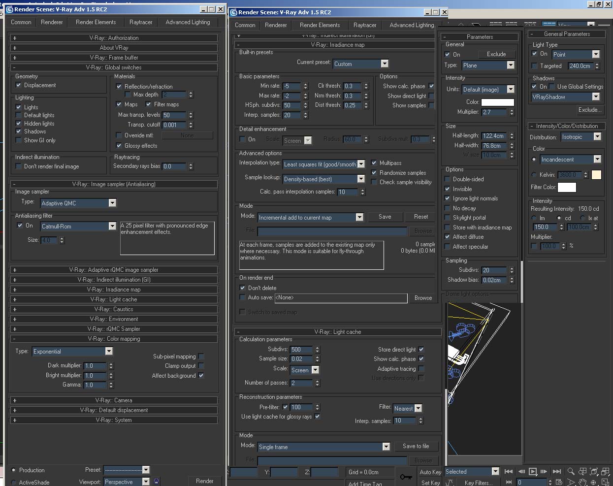 Hola amigos. Espero me puedan ayudar con este problemote que ya es una pesadilla y le he fallado al cliente. Esto nunca me había pasado con Vray 1.09 y me pasa con este Vray 1.50 rc3, hasta el momento no puedo entender que pasa ni corregirlo.