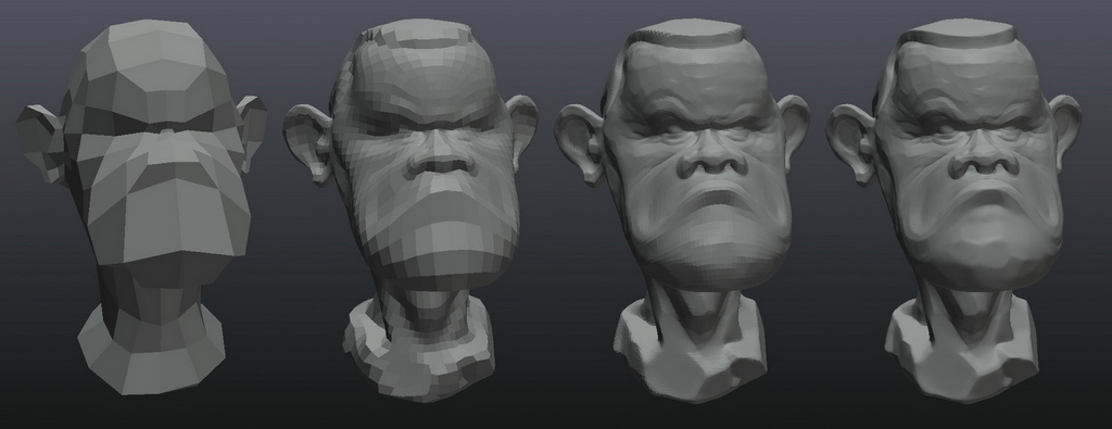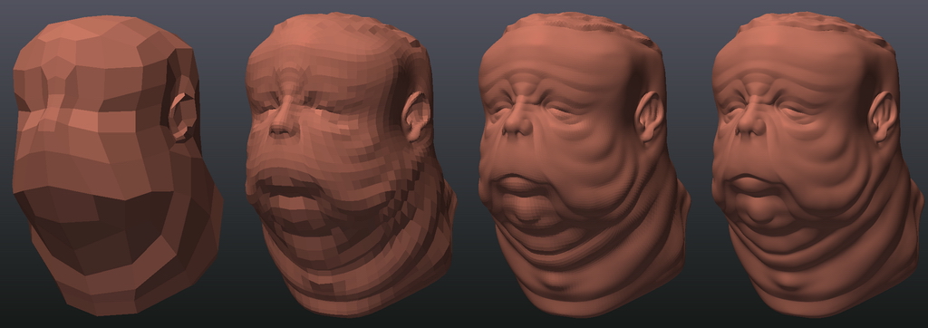 A todos nos pasa al principio, fíjate en los modelos en baja, intenta definir las formas lo máximo posible antes de pasar al siguiente nivel de subdivisión.Gracias A78. Tienes razón, pero es que, con este aún no he llegado a la fase de asimetrizacion.El cara de mono me gusta, el gordo tiene las arrugas muy repetidas, todas con la misma longitud y dirección.Gracias Ballo (lo de perra asumo que es una errata y querías decir cerdo agridulce) pero no entiendo que quieres decir con algo a lo grande ¿Qué modele a King Kong? En serio, voy poco a poco que estoy aprendiendo, no me presiones hombre.Está muy bien, perra trabaja algo ya a lo grande.