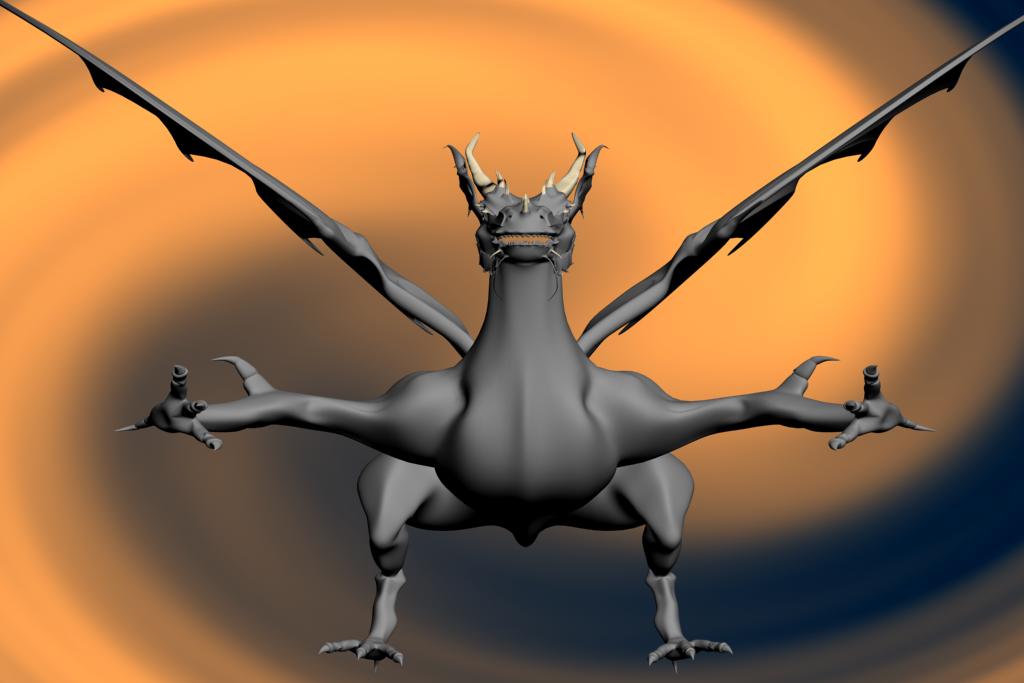 Aquí dejo mi modelo de un dragón. Quiero saber críticas sobre el cuerpo. Quisiera saber algún tutorial de algún tipo de texturizado que no sea tan complicado alguno básico.