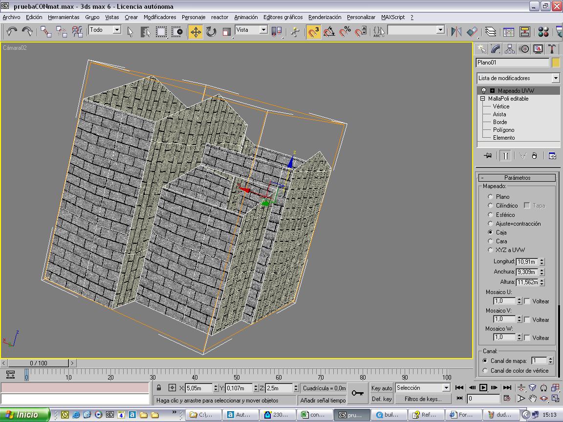 Espero no abusar de vuestra amabilidad, pera ya os dije que casi no he utilizado las mallas y me cuestan un poco. El tema ahora es siguiendo el tutorial de tcb3d, pues creé la casa (de momento el contorno después me pongo con los huecos) y resulta que al darle el mapeado UVW probando todas las opciones, la textura me queda rara.