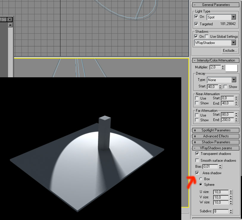 Aquí te dejo 3 imágenes con área shadows y sin ella para que veas la diferencia. El valor que debes darle al u size depende del tamaño de la escena.