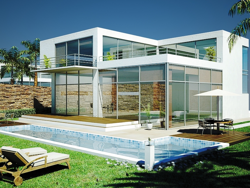 Muy chula la casa. Personalmente limitaría el reflejo del vidrio, permitiendo entrever algo del interior, desde luego la imagen está un poco quemada, pero si es el efecto que buscabas entonces no digo nada. Saludos.