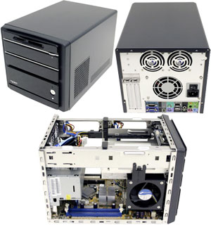 5.-minibarebone en formato plano. Están normalmente muy bien diseñados, son similares a los racks de las renderfarms profesionales, pero con una carcasa para hacerlos bonitos. Su uso normal es como Media Center para salón, y parecen un reproductor de VHS o DVD.