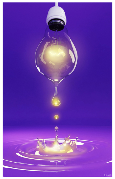 Me parece muy bonita la imagen. Lo único que veo un poco raro son los reflejos en la forma de la bombilla, pero la parte de abajo, el agua y las salpicaduras me encanta.