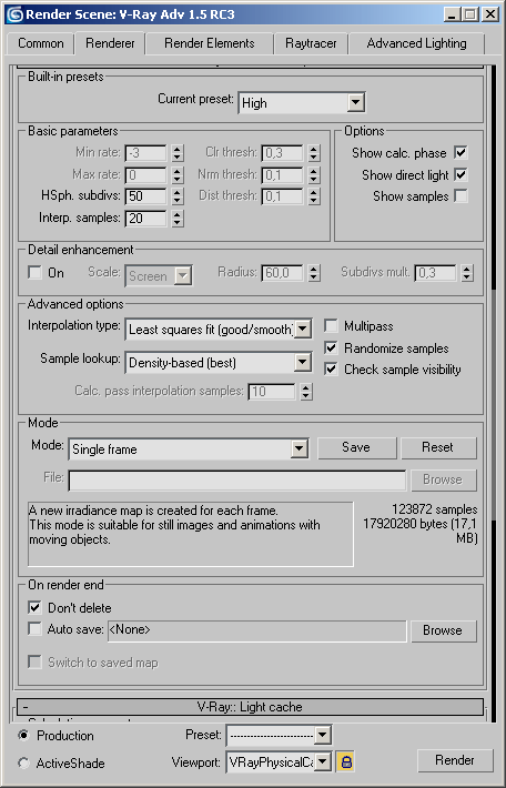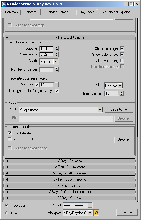 Una forma rápida si saber si es por culpa de algún material es lanzar un test desde una escena en que todos los materiales (menos el Vray Light, claro) sean un material estándar gris oscuro.