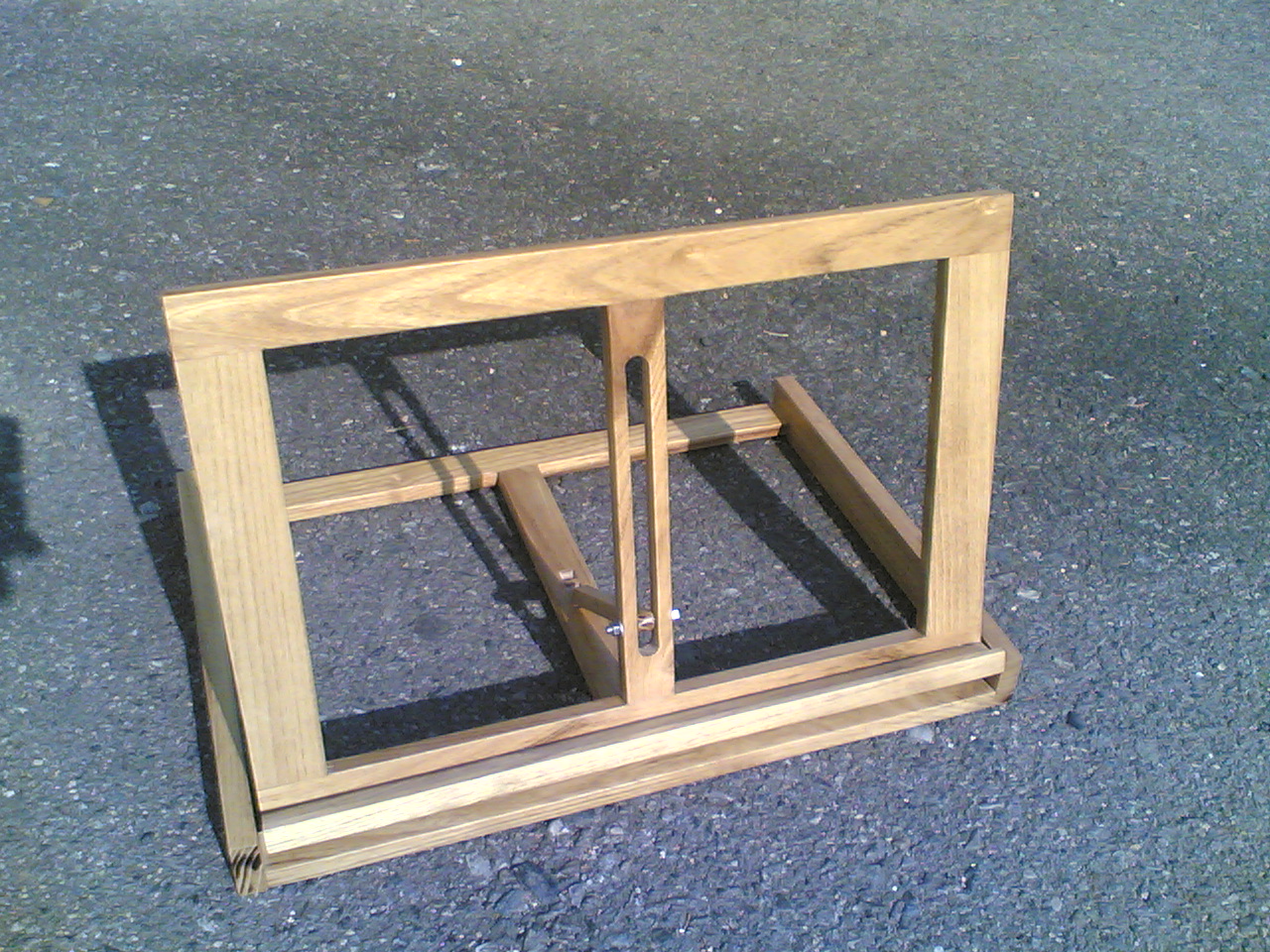 Una amiga mía me pidió hace tiempo un atril ya que tenía una contractura de caballo en sus cervicales. Como es opositora el médico le recomendó estudiar con atril. Ni corto ni perezoso pillé el SketchUp(el que es gratis) e hice un pequeño proyecto para no llegar al taller y partir de cero.