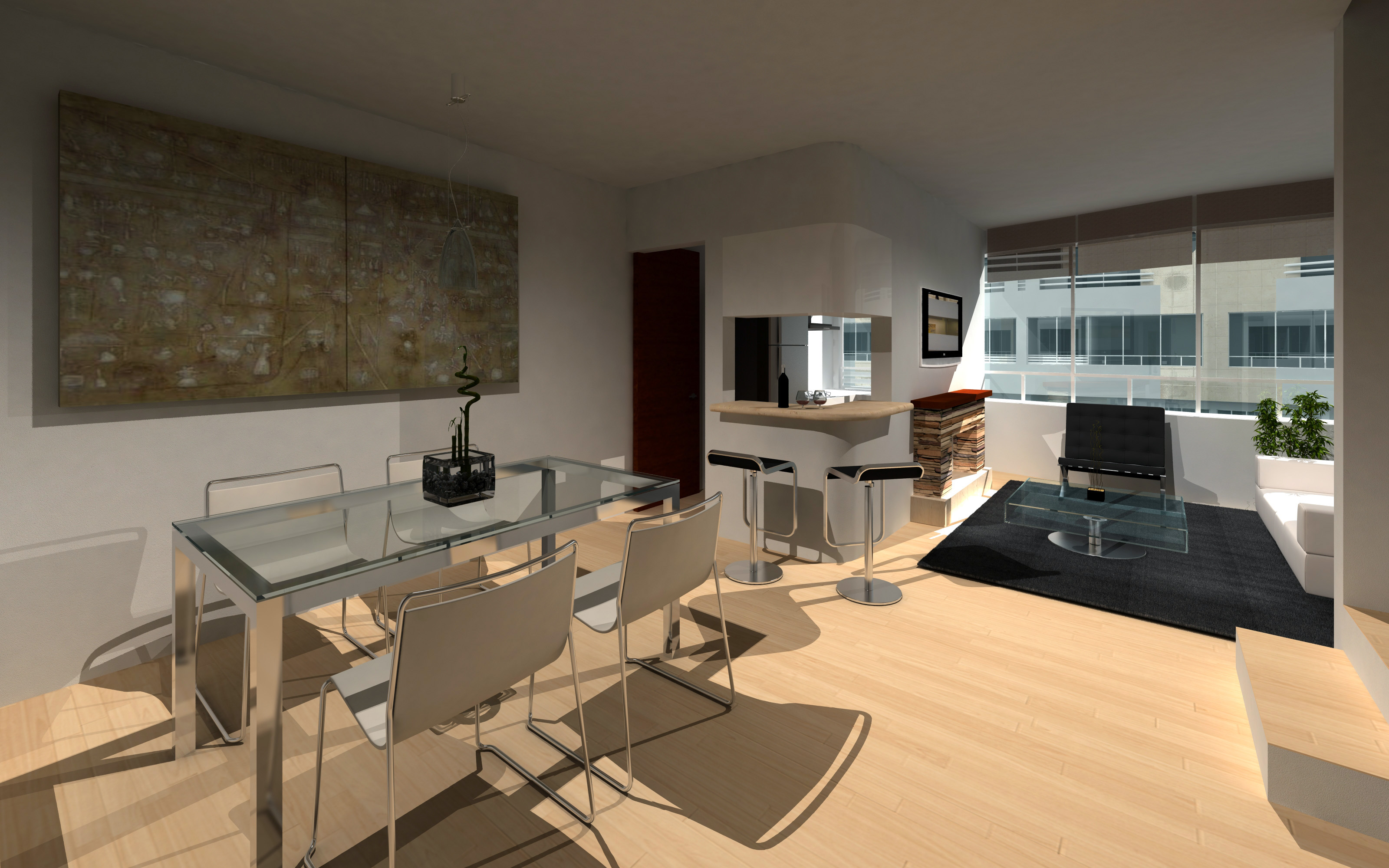 Hola, me gusta tu trabajo. Creo que para el interior, un mínimo de brillo en el suelo no le quedaría mal. Por lo demás está muy bien. Un saludo.