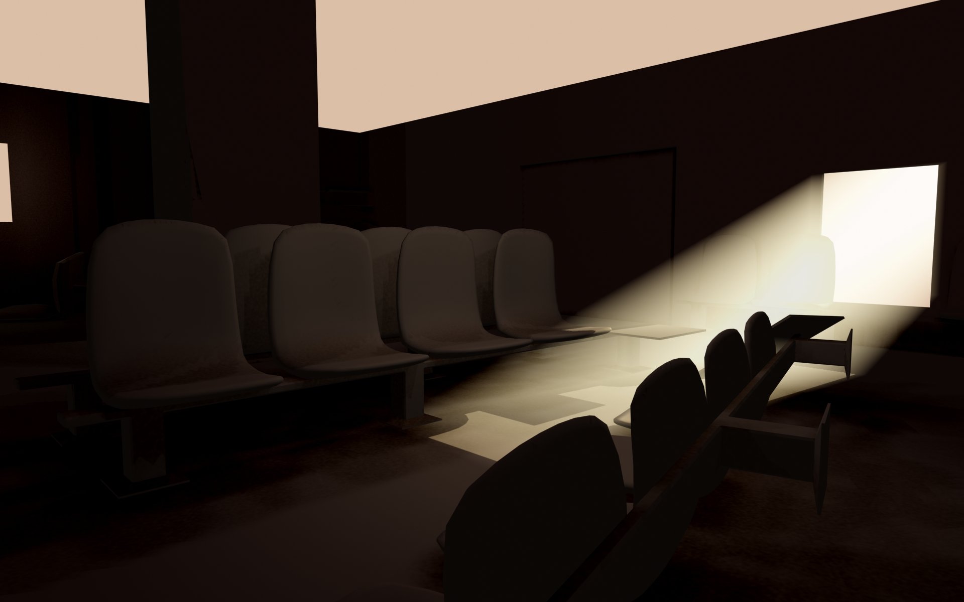 Fiajos también en el render, las paredes y los asientos están plagados de artefactos en las sombras.
