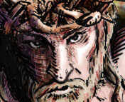 Es sólo un tema, nada que ver con religión, es sólo que el tipo siempre me ha impactado. Photoshop y Painter, en su mayoría trabajo de pluma y toques con aerógrafo y acrílicos, además de uno que otro efecto de difuminado.