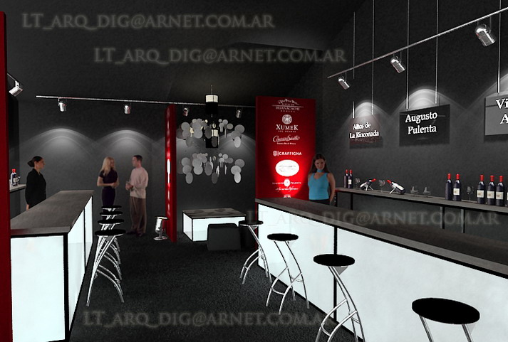 Hola: aquí publico uno de mis últimos trabajos, un stand para una feria. Esta adentro de una carpa, toda revestida en tela color negra.