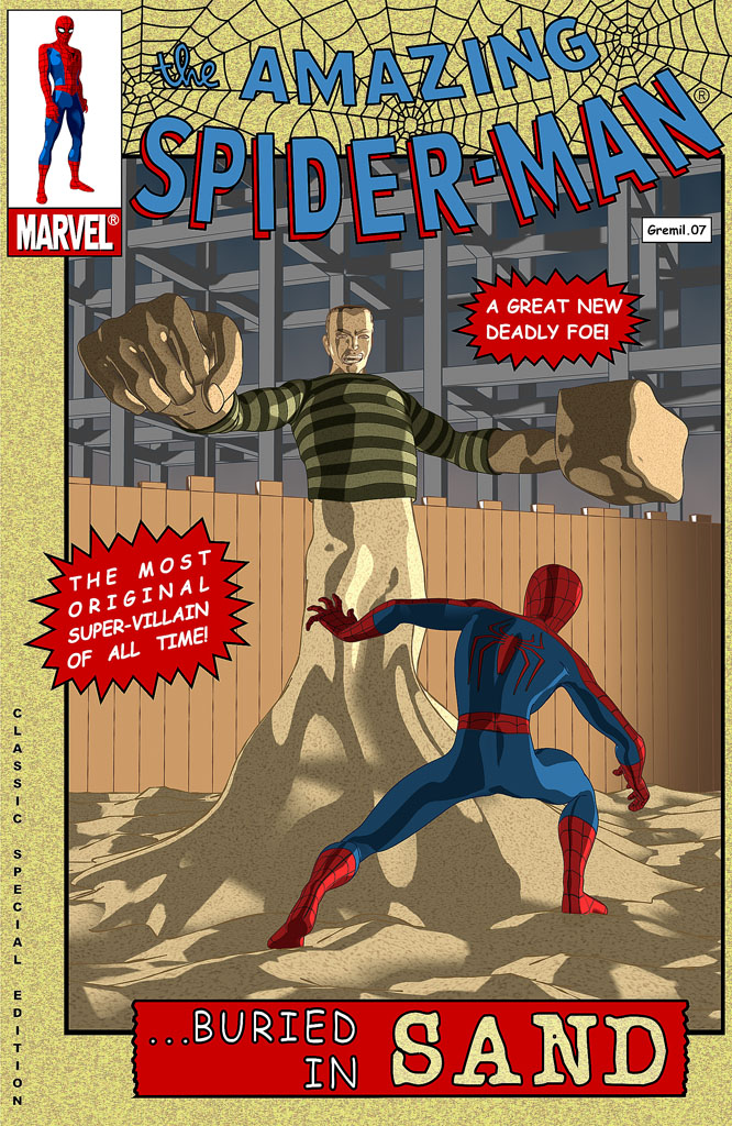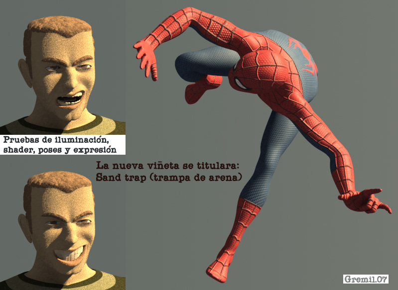Sigo con cosas relacionadas con Spider-man, en este caso se trata del hombre de arena. En principio quería modelar a escorpión, pero me propusieron hacer al arenoso ya que esta de actualidad y a eso me he dedicado, he realizado dos tipos de acabado, un render con Vray y el otro con Final Toon, el gráfico que conforma la portada está hecho en Corel Draw, el montaje final en Adobe Photoshop, donde además he subido la intensidad de color del hombre de arena para adecuarlo más al resto de la escena.