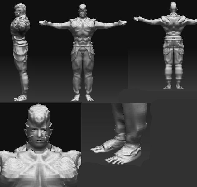 Es un guerrero más o menos futurista y exentrico (estilo muy parecido al de la serie hokuto no Ken) echo con el cuerpo base del hombre de demo que viene con el programa.