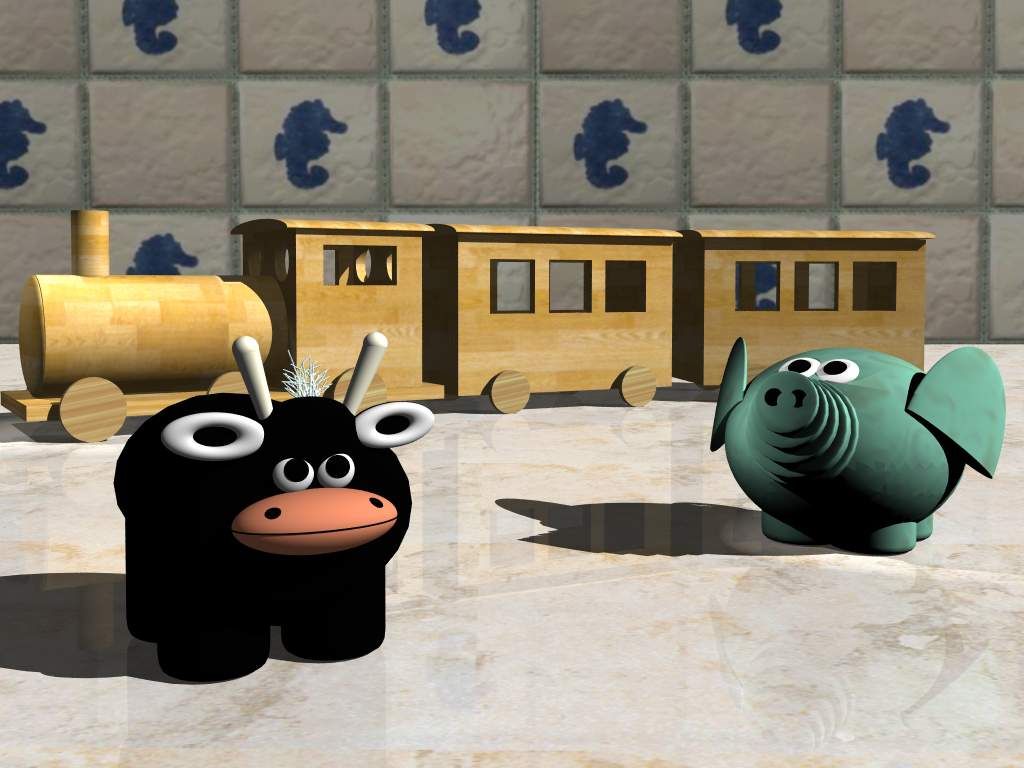 La primera está echa por mi novia, el elefante está sacado de una hucha que tenemos por aquí y el tren ya lo invento ella.