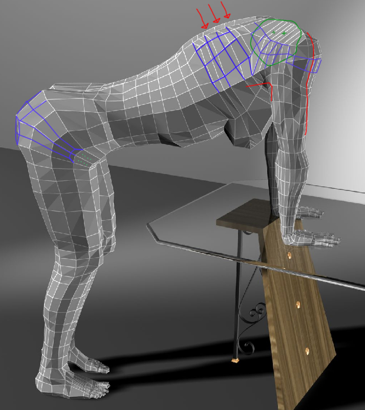 No me es muy fácil definir los músculos, como ves tengo puros cuadrados en toda la malla. Emo, hace un par de días descargué tu demoreel, el dragón es soberbio, bueno, lo que vi es que usas bastante una forma de poner los polígonos, ahí dejo una imagen, crees que deba usar eso también? O no me serviría en este caso o. O?