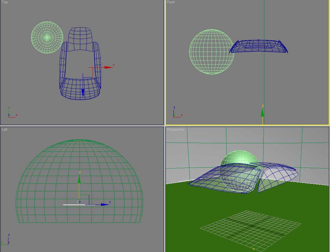 1º hay un cristal con transparencia, como veis se puede ver a través del mismo la esfera y el cubo que hay por debajo.