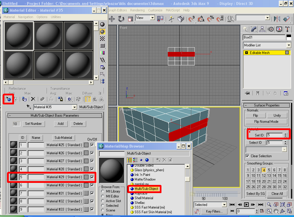 Digamos que tienes un objeto y seleccione un grupo de polígonos para aplicarles un material, primero le asignas un número id a este material, luego en el editor de materiales, clip en get y escoges material multi/sub-oject, y buscas el número que le distes a los polígonos y allí editas el material que le quieres aplicar, estoy suponiendo que trabajas con 3ds Max, en la sección de tutoriales podrás encontrar algo respecto al tema.