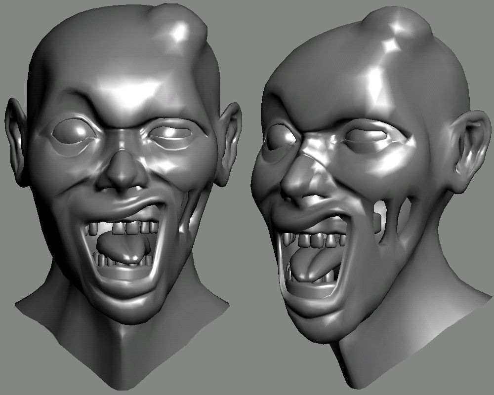 Un zombie horripilante de verdad quedaría bien haciendo tres capas, la piel los músculos y el cráneo y bueno, quitando y poniendo cachos de un lado y otro igual es una locura lo que digo.