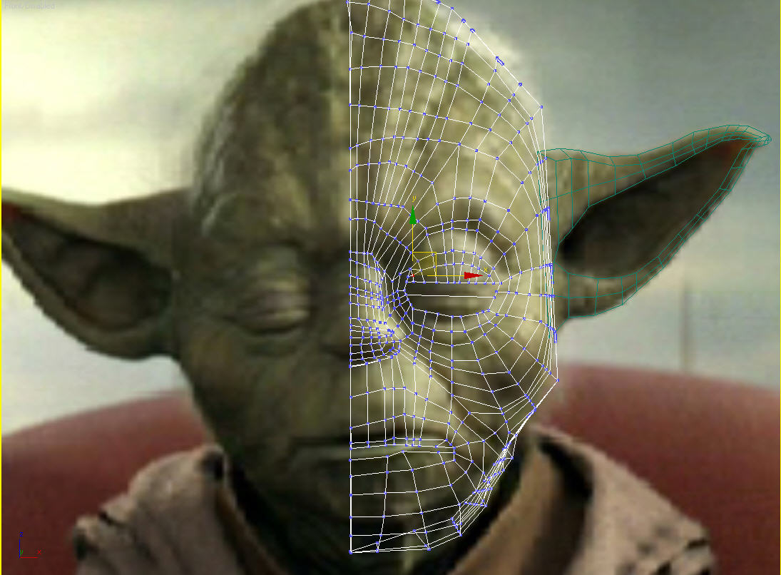 Bueno vamos por otro modelo en 3d, para seguir practicando y tratar de entender como es que mismo se modela una cabeza, esta vez al maestro Yoda, empecé en 3dsMax con la fotogarfia del máster en el fondo y prosegui a modelar por las pasrtes que pensaba deberían modelarse primero y de allí lo pase al ZBrush, y como resultado obtuve lo que pueden ver en los gráficos.