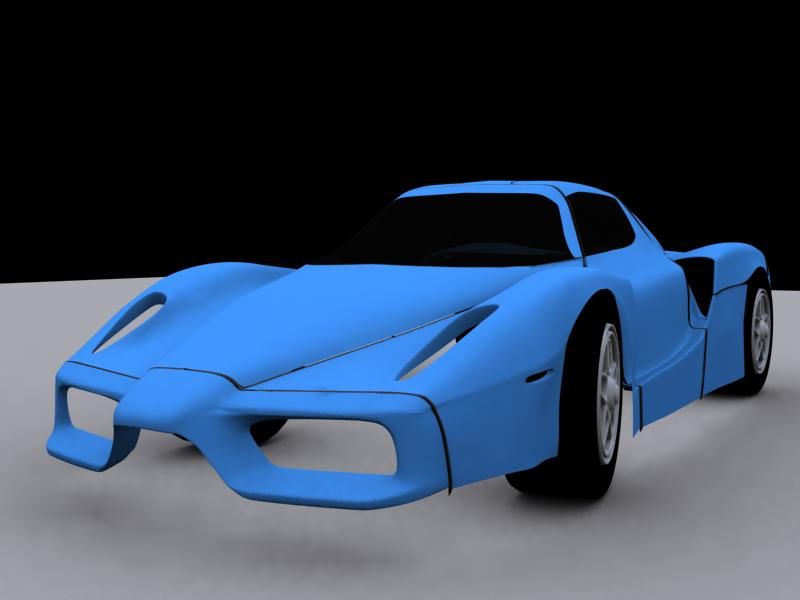 Me parece que te has ido directo hacia el más difícil todavía pero viendo el resultado no está mal. Cuando modelamos coches estamos intentando adivinar (por muchos planos que tengas) los volúmenes originales que el diseñador pensó. Esta tarea se vuelve más difícil cuando el coche está diseñado por alguien tan bueno como Pininfarina. Es un coche muy difícil, tiene pocas líneas de referencia y tienes que trabajar más con la intuición que con los planos, ayuda mucho tener abiertas varias fotografías del modelo mientras trabajas y mirarlas mucho.
