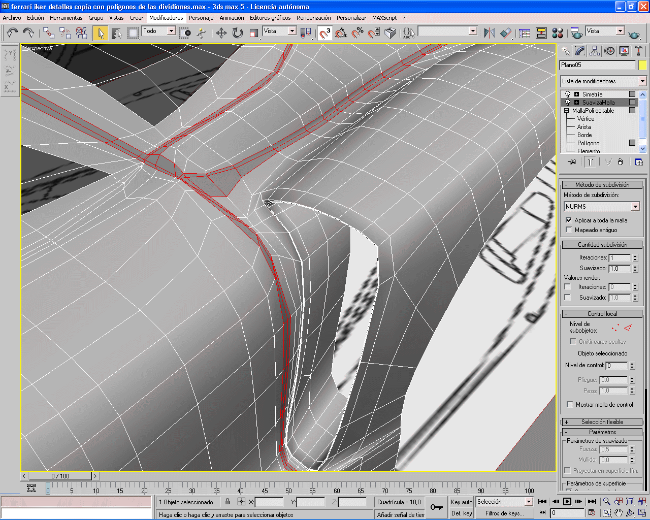 Son las puñeteras subdivisiones para realizar las separaciones del capó, las puertas y demás son un coñazo, me da que me ha pasado por sobrecargar mucho la malla en baja poligonización.