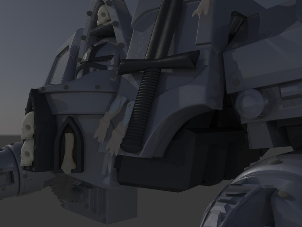 El trabajo se basa en una miniatura de Warhammer 40.000, adjunto referencias para poder comparar. Es una práctica personal para mejorar mis habilidades en modelado no orgánico. Para el modelado estoy utilizando Maya, XSI y ZBrush en fases posteriores. El render (donde lo hay, pocos todavía) es Mental Ray.