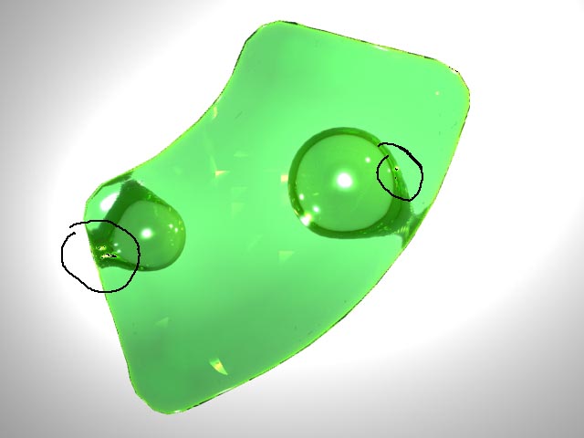 Ahora mi pregunta va así. Estoy creando una suerte de gel con unas esferas adentro, cada esfera tiene una omni light adentro y afuera otra omni, el problema está en que en algunos puntos del gel en el render aparecen unas manchas negras y no he encontrado como corregirlo, he movido casi todos los parámetros del material, que, por cierto, es de Mental Ray, sin resultado.