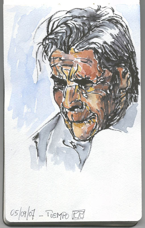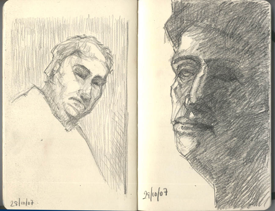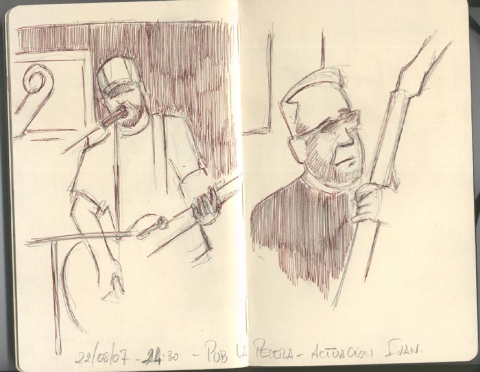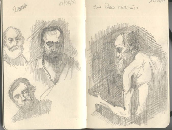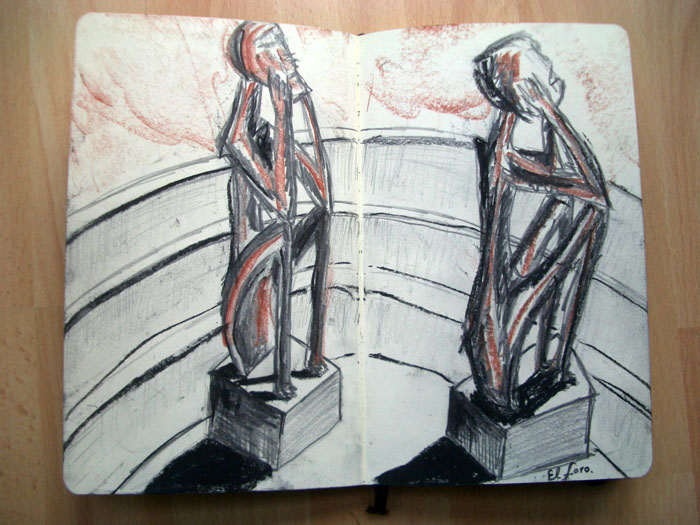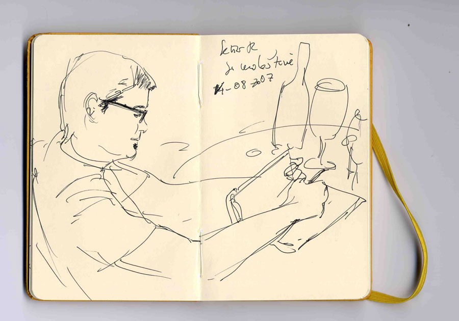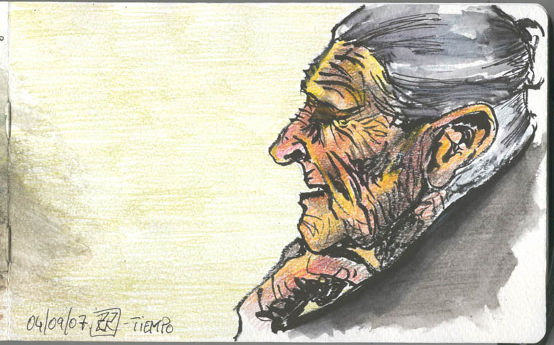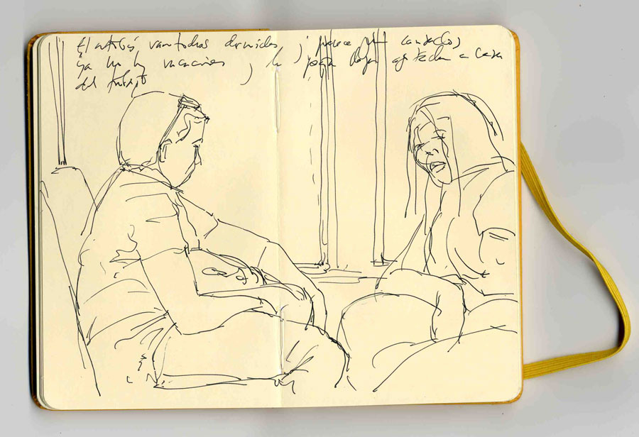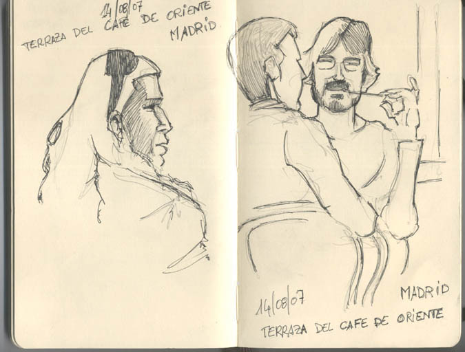 (El segundo boceto es un retrato del señor dibujando con su moleskine en una terraza del viejo Madrid).