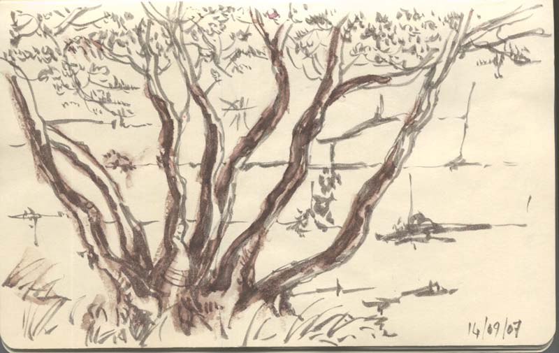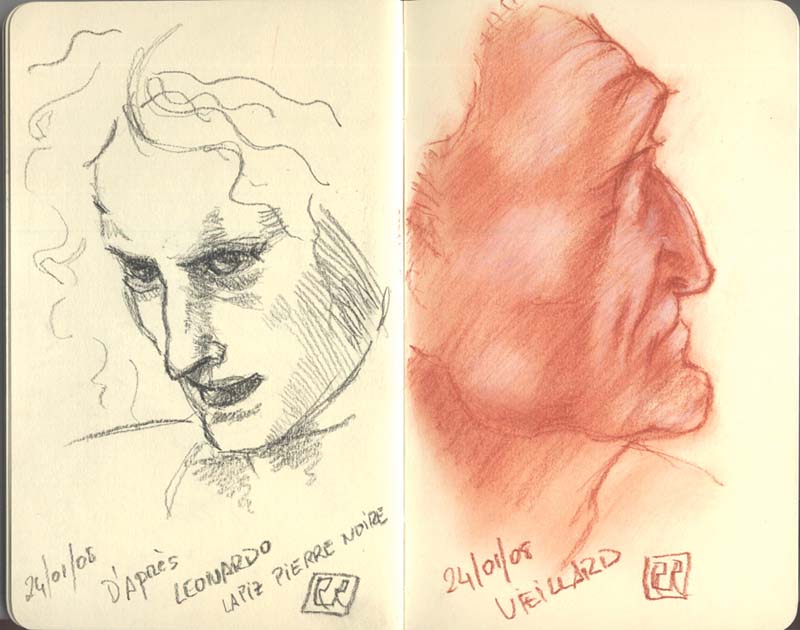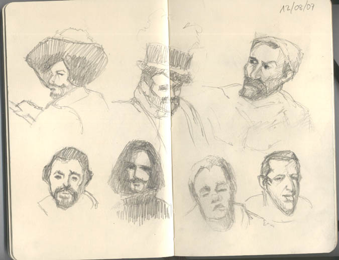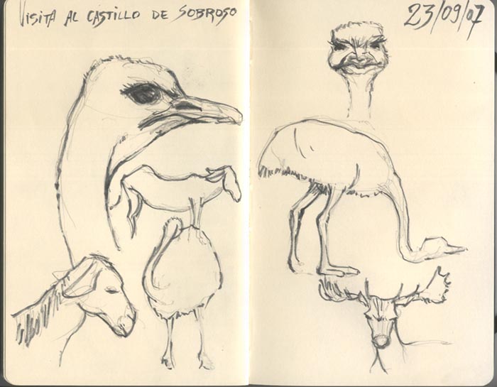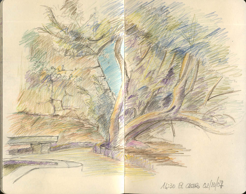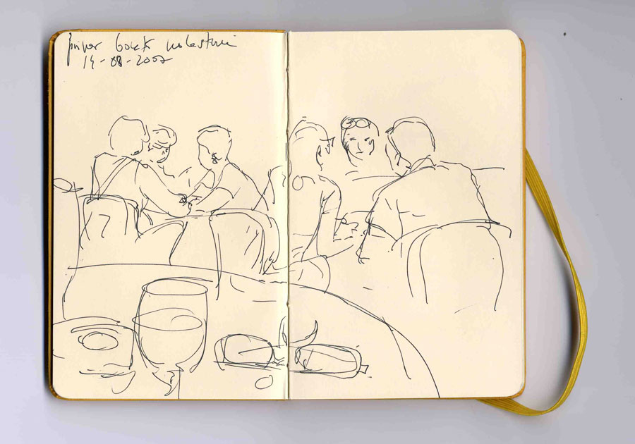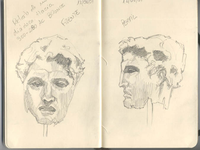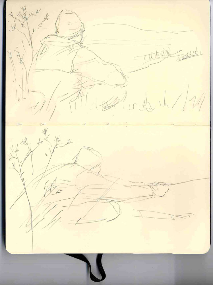 (El segundo boceto es un retrato del señor dibujando con su moleskine en una terraza del viejo Madrid).