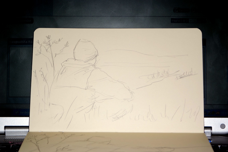 (El primer boceto, tomando unas cervezas en el viejo Madrid).