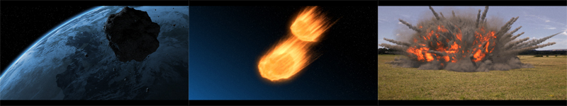 Buenas otra vez. Esta vez vengo con un conjunto de tres planos. Y que, como su nombre indica, tratan sobre el recorrido de un meteorito desde que está en el espacio hasta el impacto.