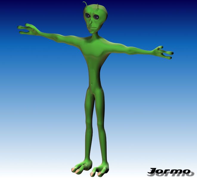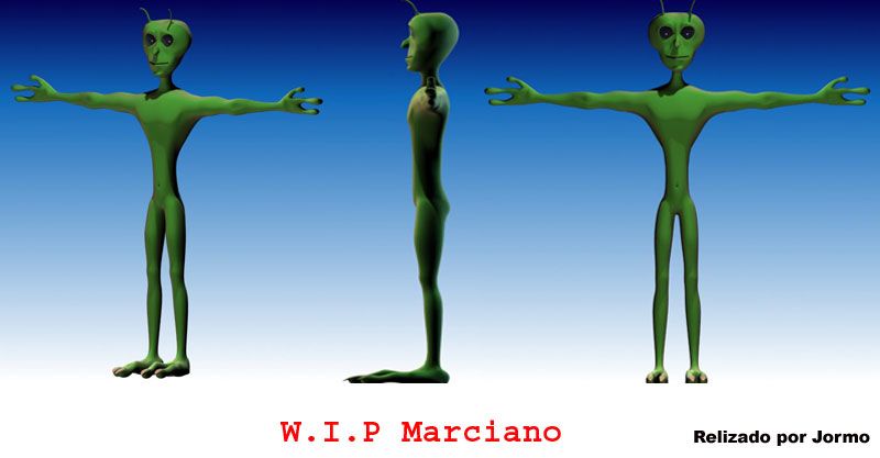 Me gusta mucho el marciano, solo veo que los pies son un poco grandes. Por lo demás está muy bien, quizá añadirle un poco de musculatura en las piernas. Ánimo y un saludo.