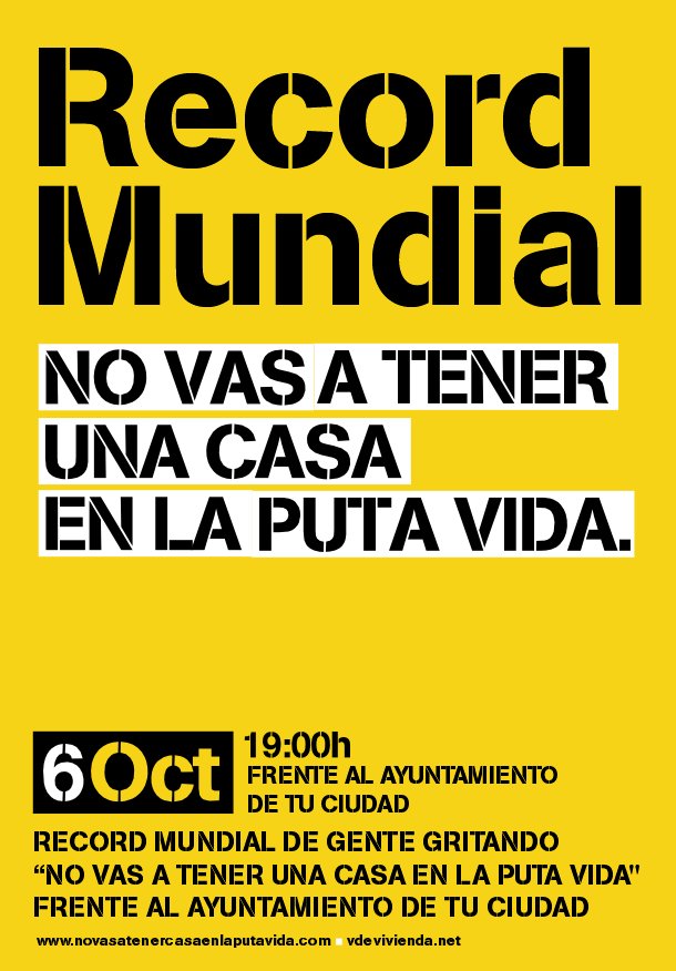Este es el grito de la campaña de protesta en contra de la situación de la vivienda en España que v de vivienda. Asamblea popular por el derecho a la vivienda. esta promoviendo para hacernos escuchar batiendo un récord mundial.
